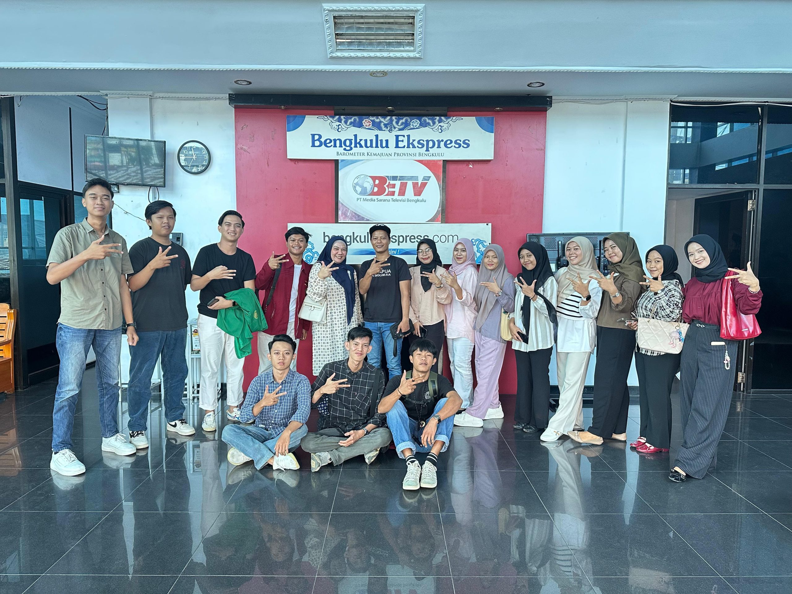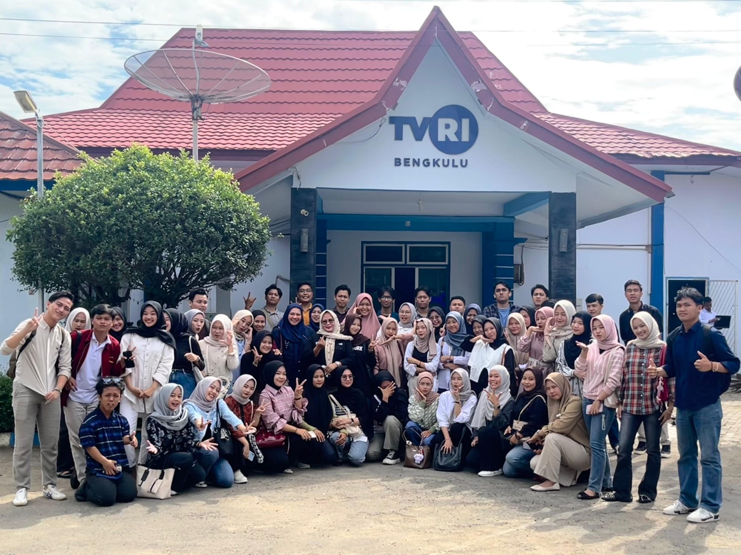 Mahasiswa Ilmu Komunikasi 2022 melakukan studi lapangan ke TVRI Bengkulu, stasiun daerah televisi nasional, untuk memahami sistem kerja penyiaran.