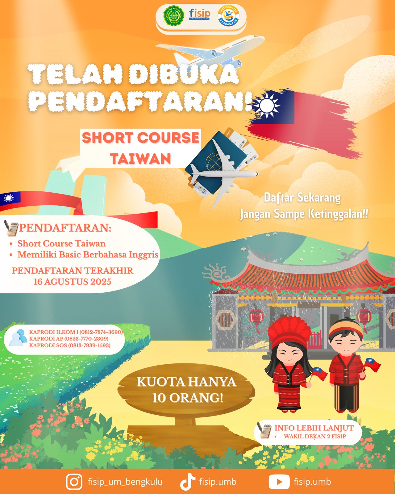 Kesempatan emas untuk mengikuti program short course ke Taiwan bagi mahasiswa FISIP—daftar sebelum 16 Agustus 2025, kuota terbatas hanya 10 orang!